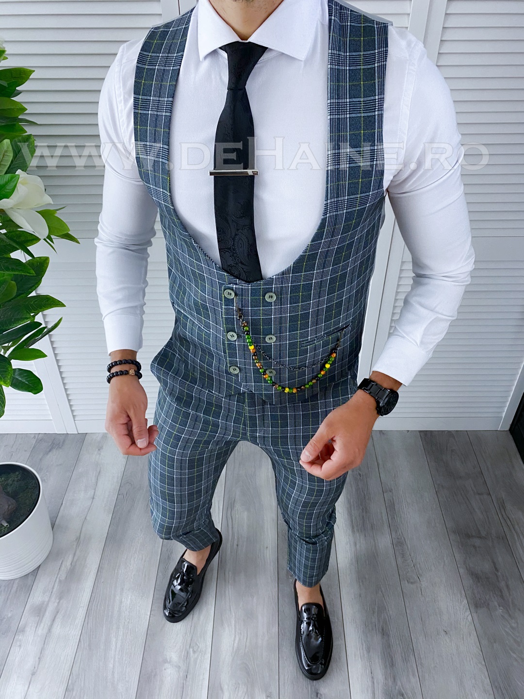 Compleu barbati Vesta + Pantaloni Compleu barbati office – compleu fashion – compleu elegant – compleu nunta – compleu botez Compleu Slim fit Material pantaloni conici: 63% poliester 35% vascoza 2% elastan Accesoriul nu este inclus Compleul cuprinde urmatoarele piese: Vesta Pantaloni Manechinul are 180 si 70kg si a pozat cu marimea 42. Dimensiune pantaloni Talie (cm) Lungime (cm) 30 39 102 31 40.5 102 32 42 102 33 43.5 102 34 45 102 36 46.5 102 Dimensiune vest..